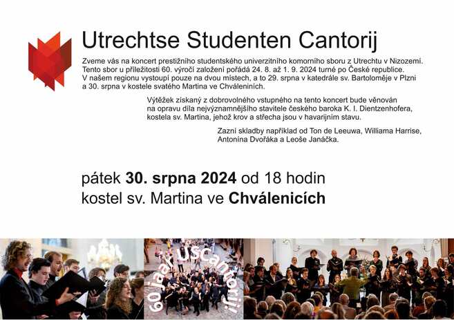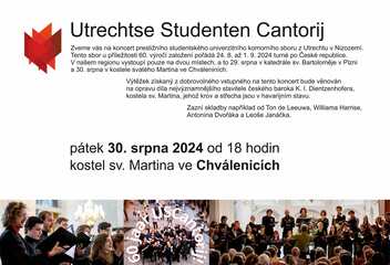 Jste srdečně zváni na koncert studentů z holandského Utrechtu UTRECHTSE STUDENTEN CANTORIJ, kteří pořádají v rámci 60. výročí svého založení prázdninové turné po České republice.