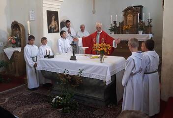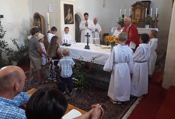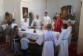 Poutní mše svatá v kostele sv. Vavřince v Žákavé.