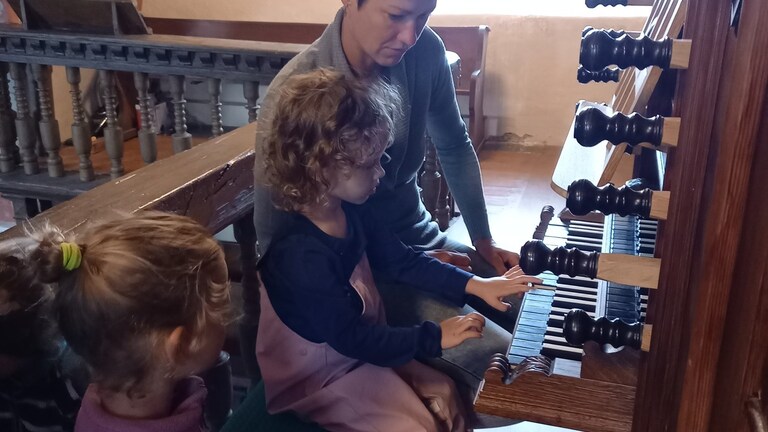 Nejdřív jsme venku hledali věci související s varhanami a hrou na ně, udělali jsme si praktickou ukázku fungování varhanní píšťaly (nebyla demontována z nástroje), pak jsme se na kruchtě podívali, jak varhany fungují a děti si vyzkoušely i jejich zvukové bohatství.